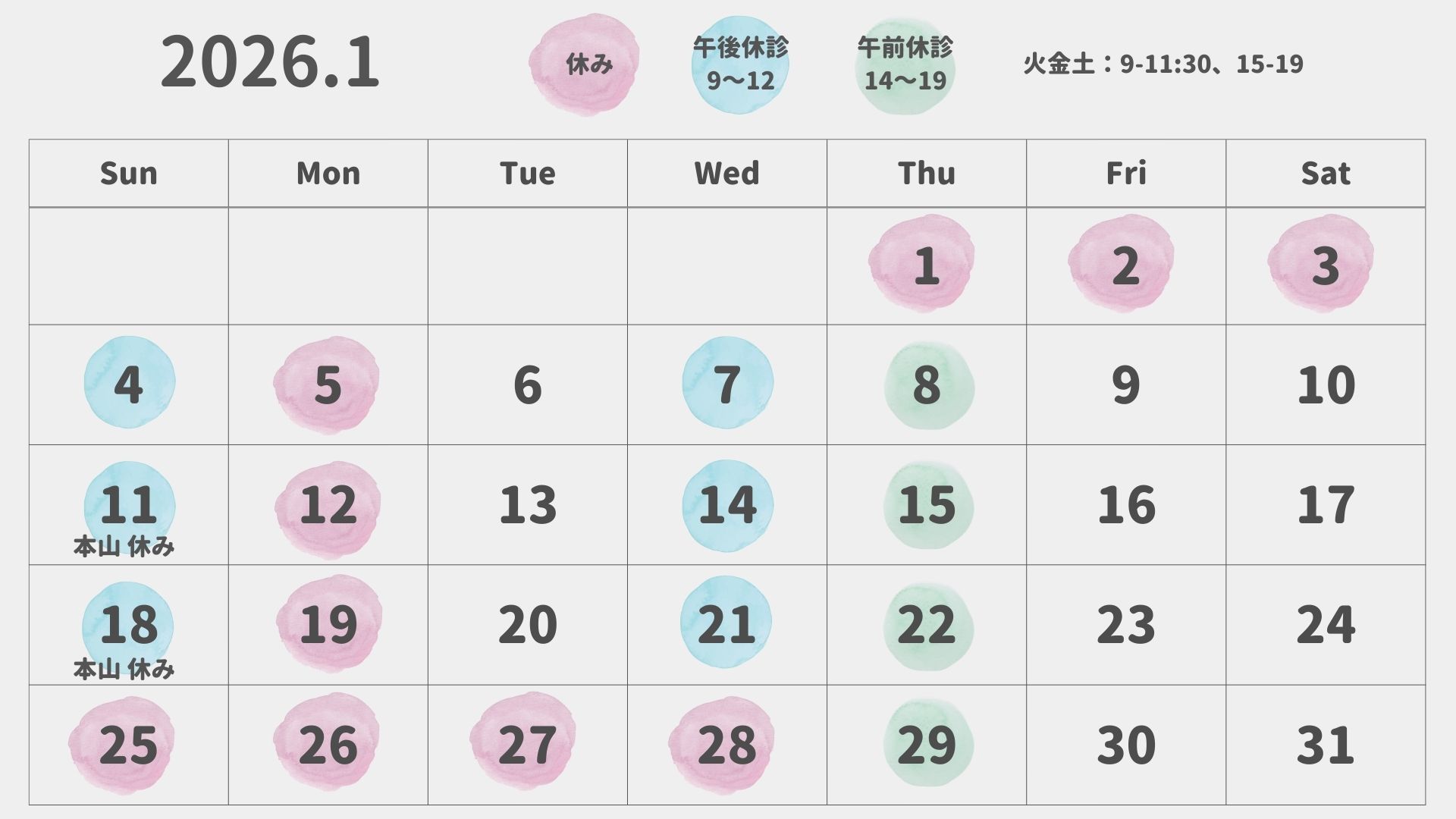 春宵堂治療院 2025年12月の休業日のお知らせです。12月1日から3日まで休業。年末は通常通り営業します。
