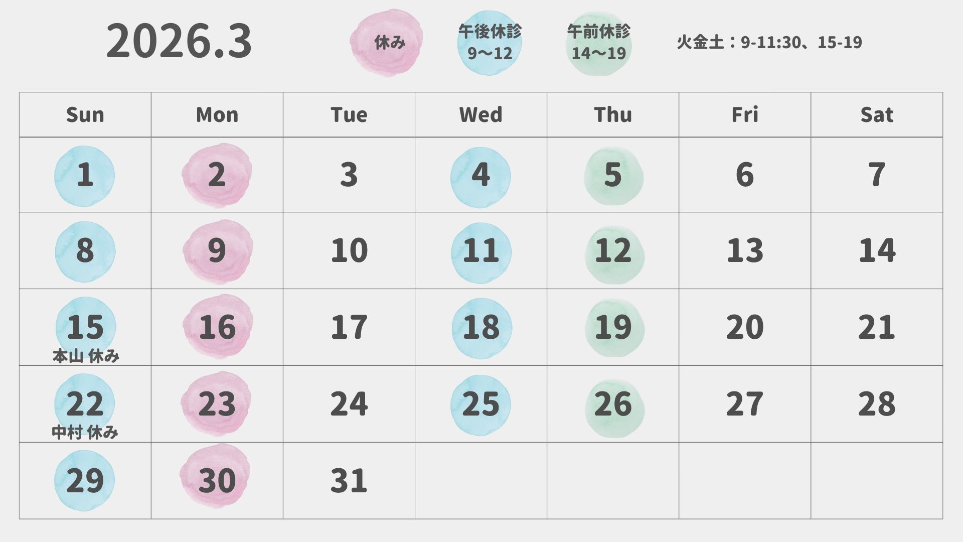 春宵堂治療院2026年2月休業日のお知らせ 2026.02.14 お知らせが遅くなりましたが、春宵堂治療院、2月の休業日のお知らせです。 各鍼灸師のお休みは以下の通り。 ※月曜日は定休日です。 >>詳しい営業時間はこちら 春宵堂治療院2026年1月休業日のお知らせ 前の記事
